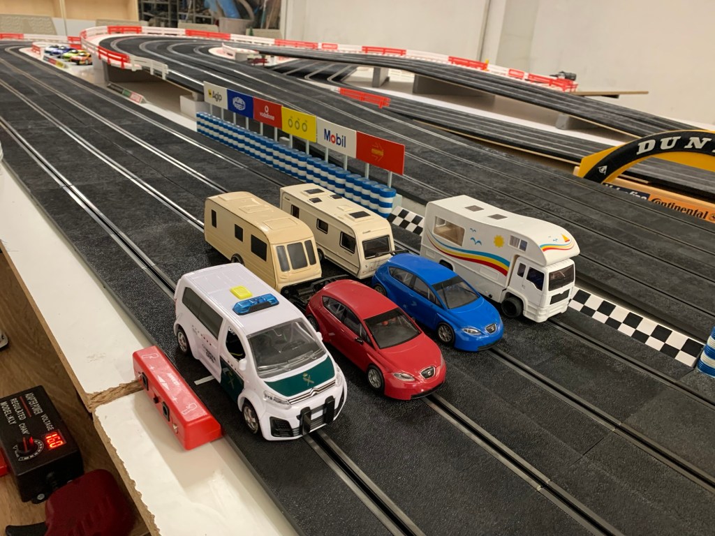 Now that most of the Covid19 restrictions have been lifted in our area, a good group of friends in Mutxamel (Alicante, Spain) couldn’t wait any longer to reunite, check thoroughly their 1:32 racers, and put them again to good use. Our host, convinced us with solid arguments, such as: more space, with a whole garage…