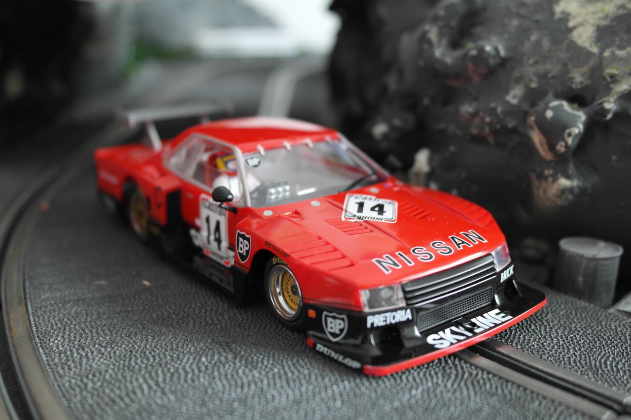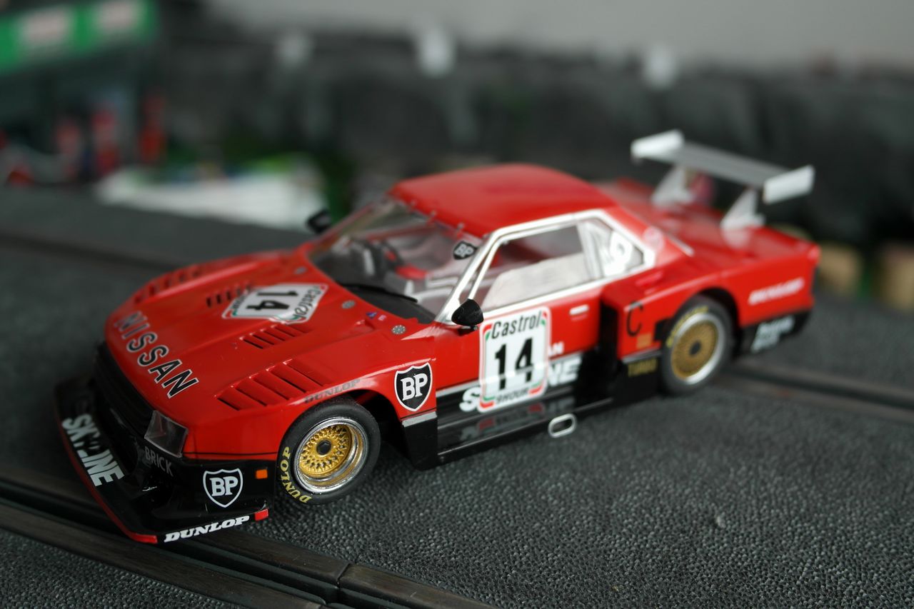 On the domestic track, and from my use as an amateur slot enthusiast, this car was more neutral and docile than expected, and I am not saying this from the visual impression, but after reviewing the dimensions of this car. Found it very driveable, and in line with the docility and efficiency that, for example, another of the Sideways group 5 transmits, the Ferrari 512 BB. I admit that I enjoy this Nissan on the track, feeling much more confident than with the Stratos, which is more critical on the limit, to define it in some way.