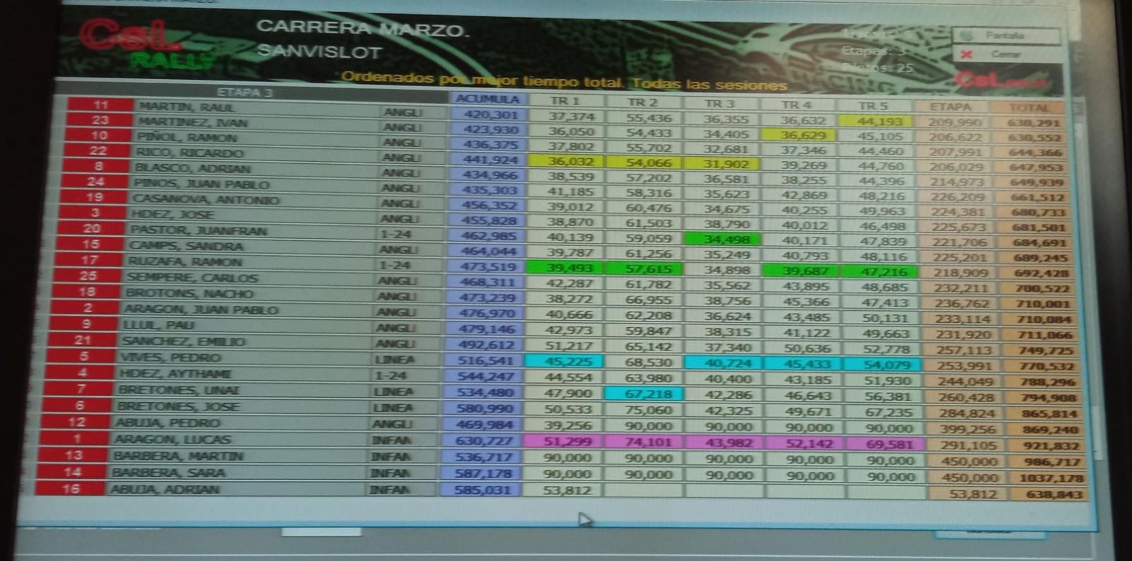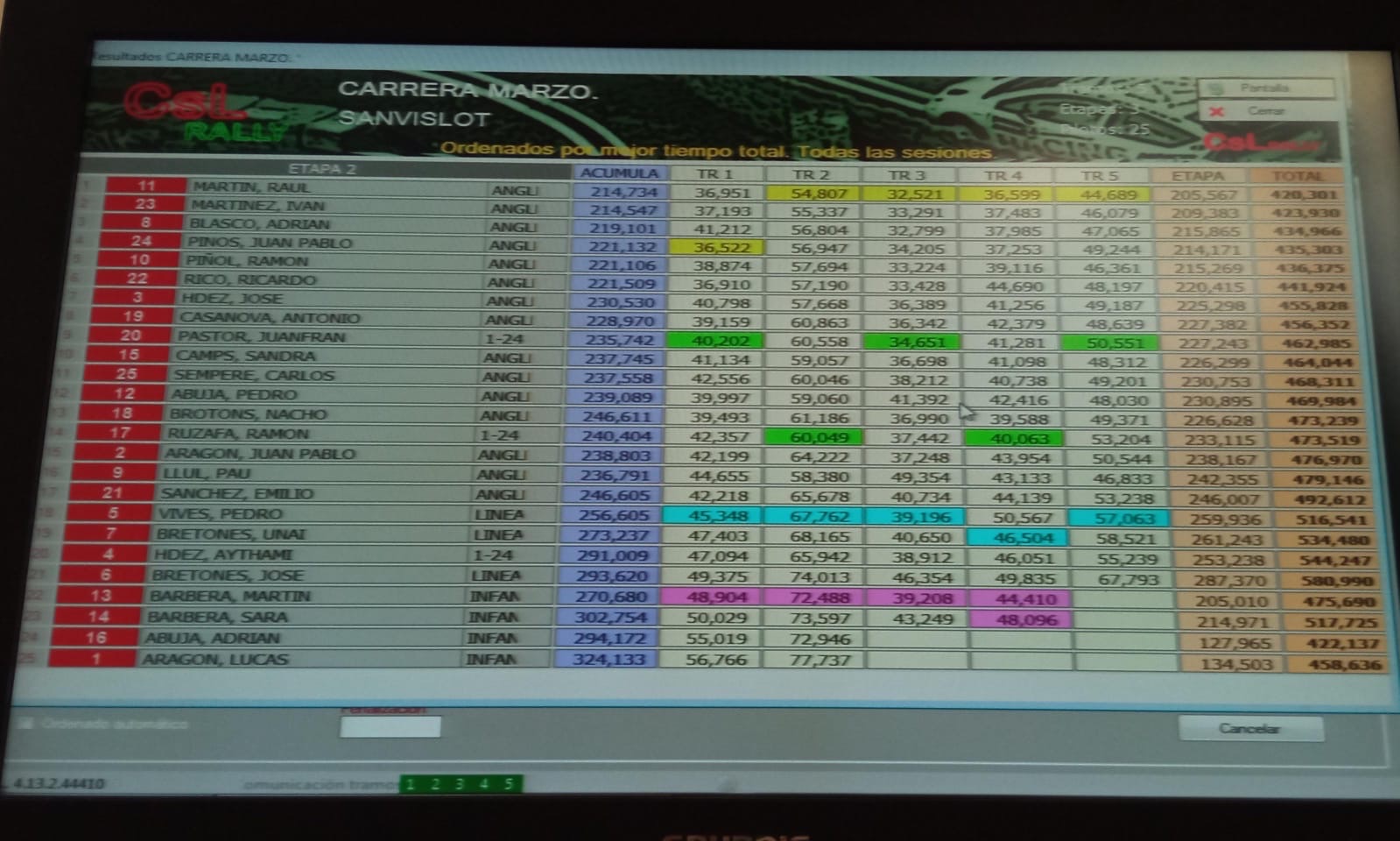 En el caso del evento del que os hablo en este artículo, la lista de inscritos no hizo más que crecer a lo largo de la semana en la que se iba a celebrar, para llegar finalmente a los 25 pilotos, una cifra nada desdeñable. Semejante inscripción hace a trabajar a plena máquina tanto las pistas como las fuentes de alimentación, así como los módulos que se encargan de informar en todo momento de los tiempos de todos y cada uno de los pilotos según van disputando simultáneamente sus tramos.