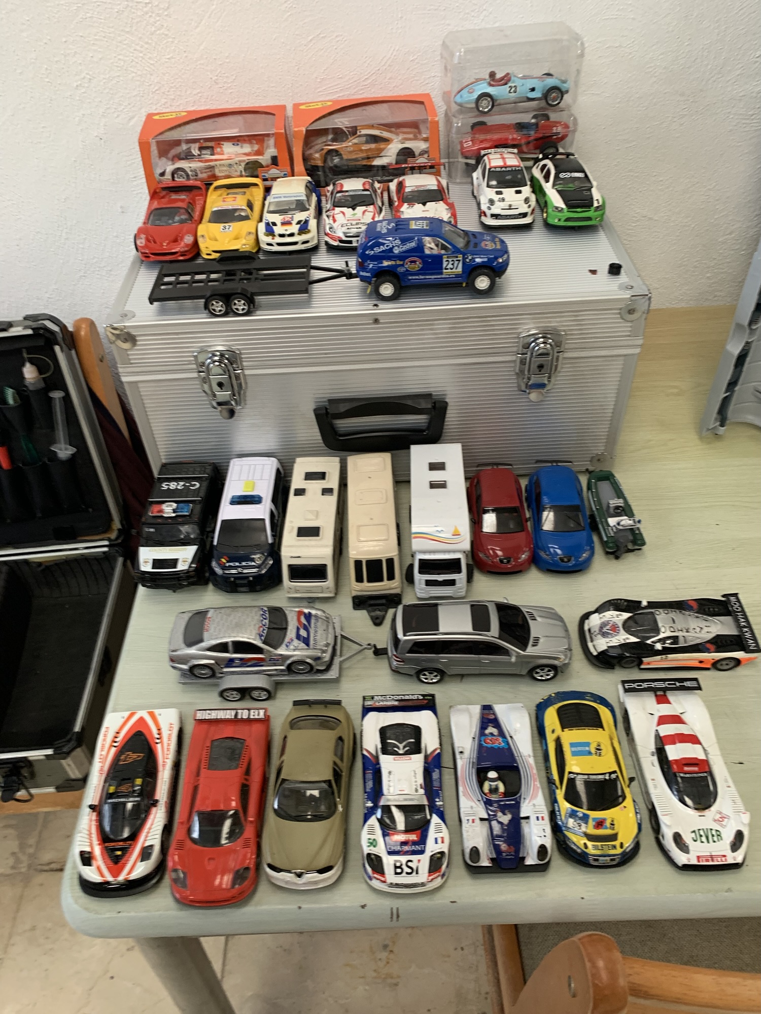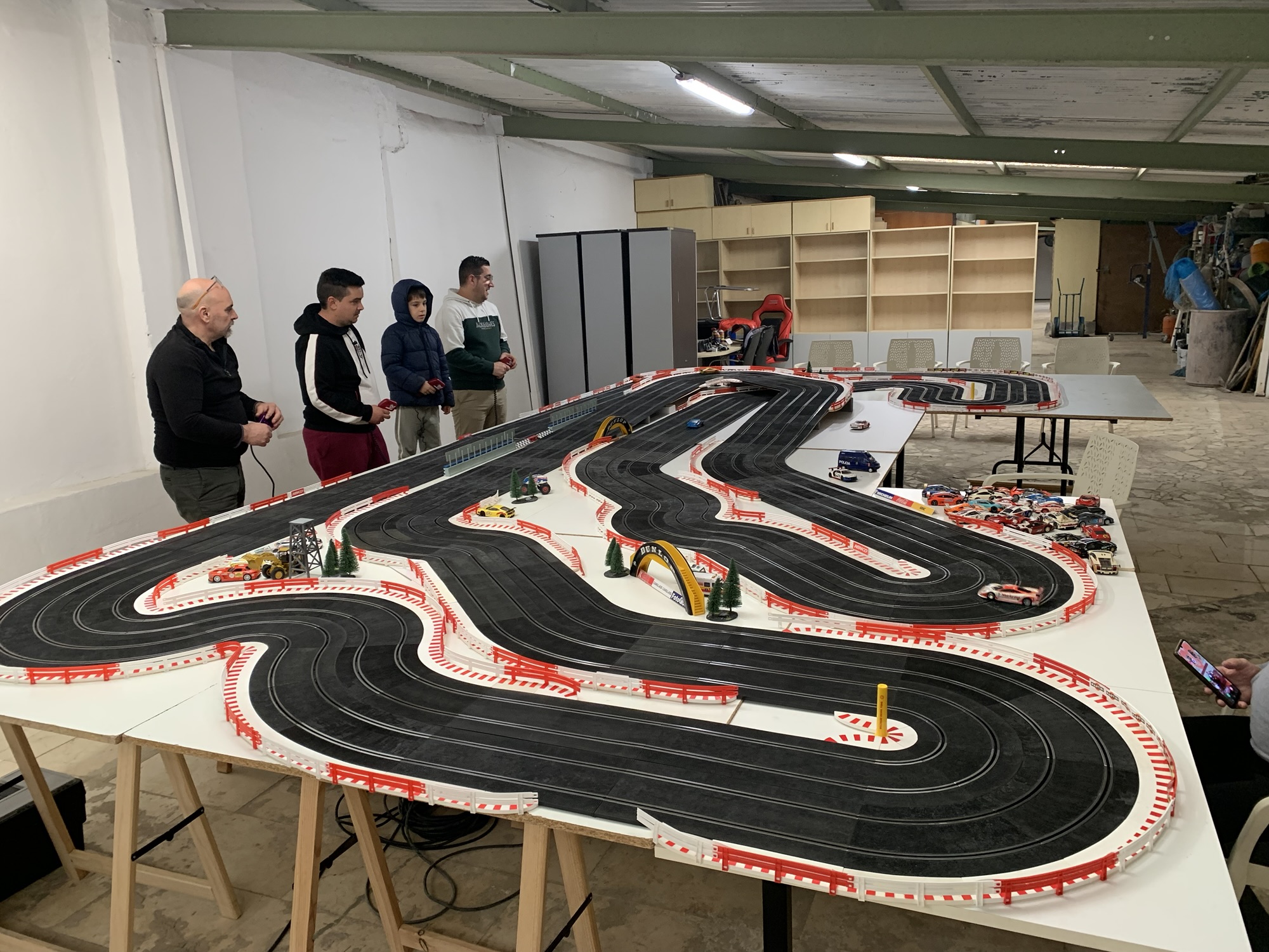 Carlos cuidó la parte gastronómica con unas cocas saladas de la panadería del Pelaílla, mítica de Muchamiel, y nos dedicamos a ir sacando brillo a los metros y metros de carriles Ninco que teníamos a nuestra disposición.