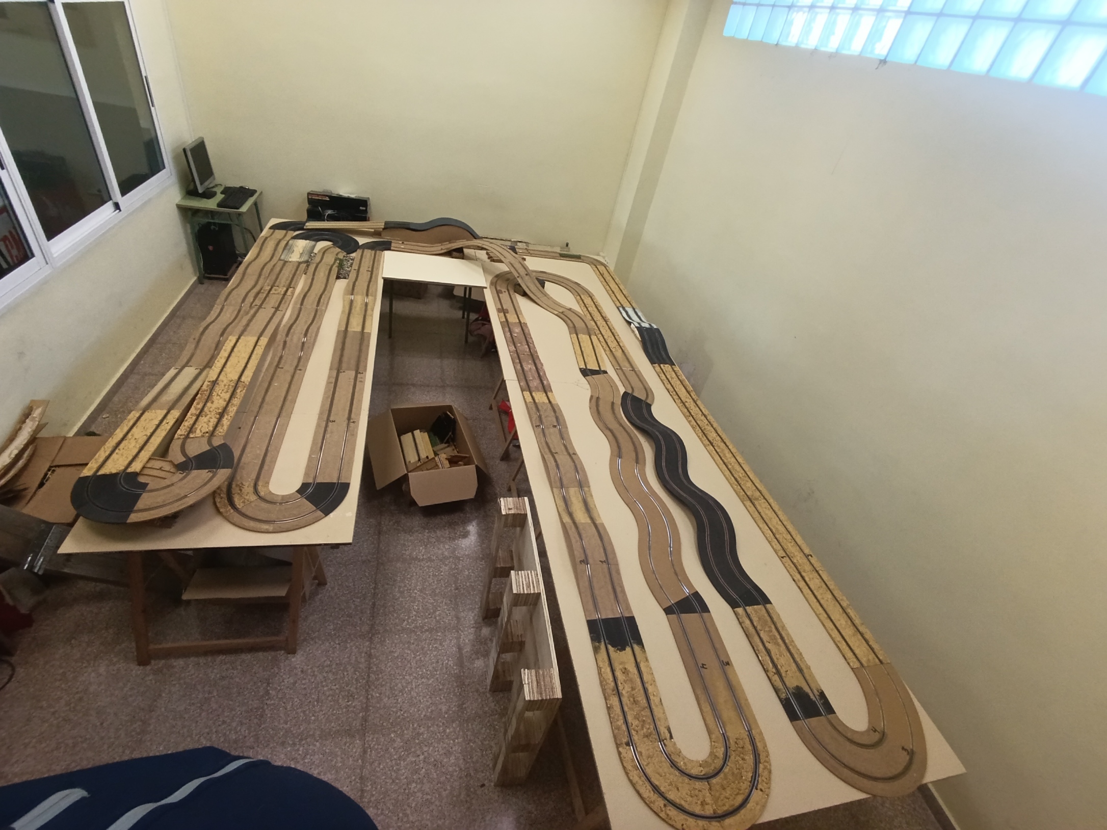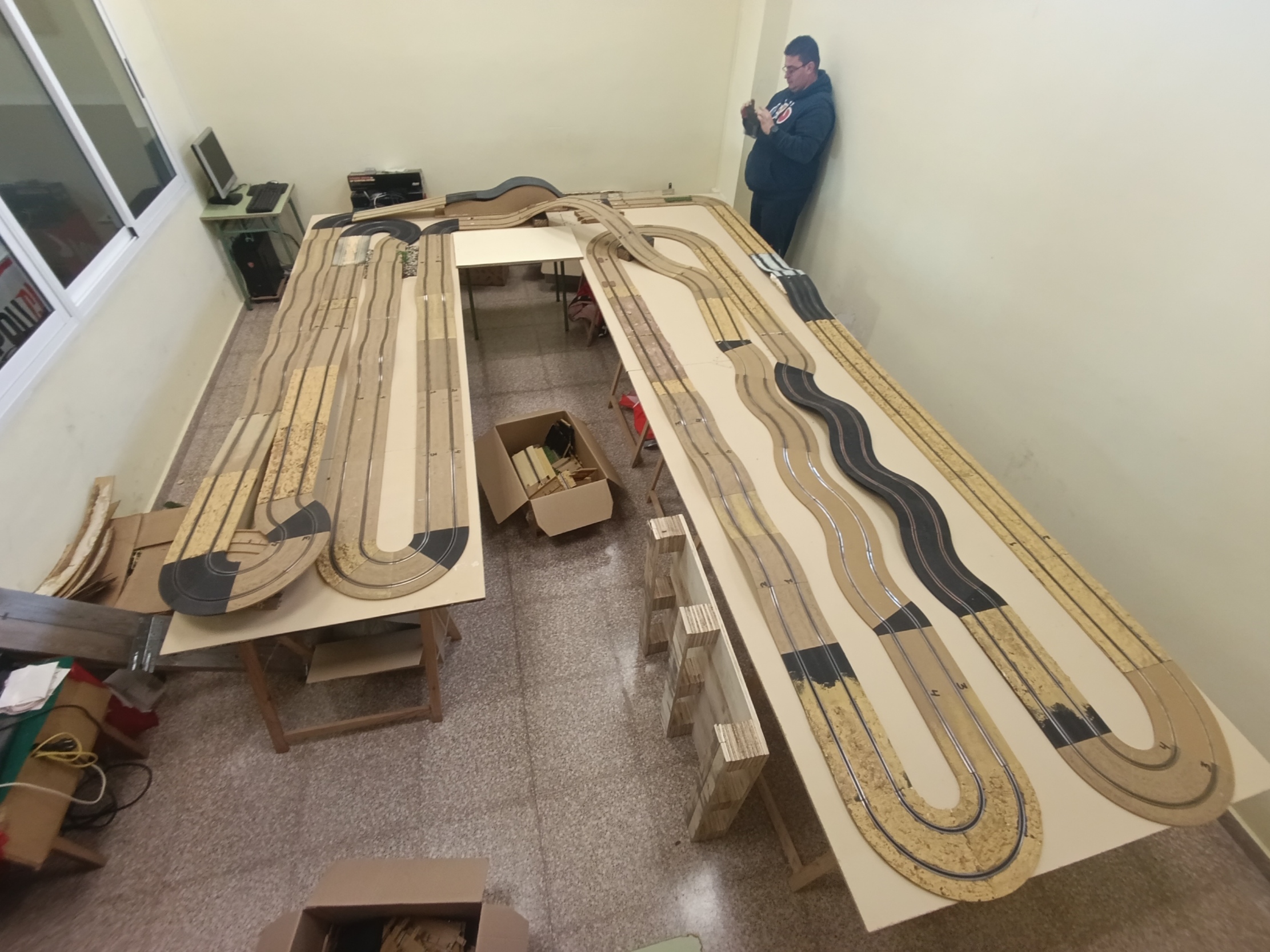 Con todo desmontaje vienen las sorpresas. Y en nuestro caso fue una cantidad inesperada de material inédito y no utilizado, en forma de pistas de raid ninco que nos iban a venir de perlas para el nuevo proyecto. A cada módulo que desmontábamos, se descubría debajo una caja de cartón llena de pistas intactas.