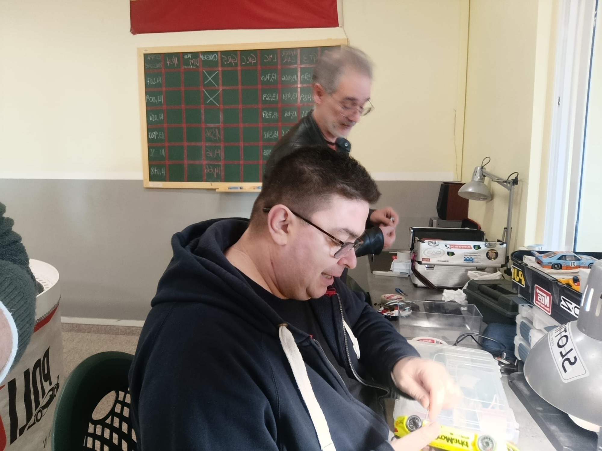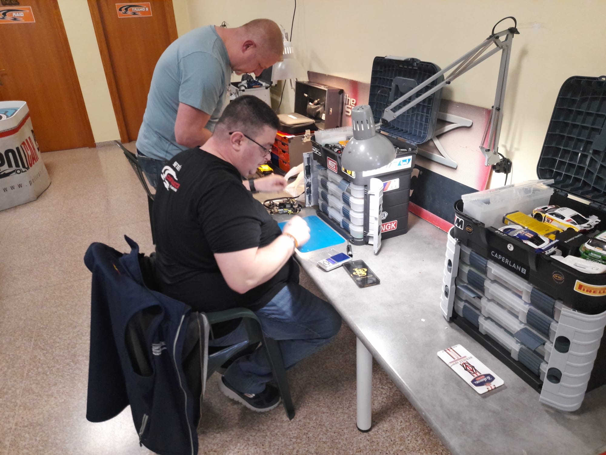 Me hace gracia pensar que no hace mucho tiempo muchos de los aquí presentes en las fotos perdiamos tornillos, se nos caían ejes, llantas al suelo, quemábamos algun chasis o la mesa de trabajo con el soldador…. Todo eso ya es cosa del pasado. Somos un batallón de ingenieros especializados con precisión quirúrgica poniendo a punto nuestras máquinas. Bueno, a lo mejor soy optimista, pero ya no destrozamos tanto material en busca de esas décimas de segundo que llevan a la gloria.