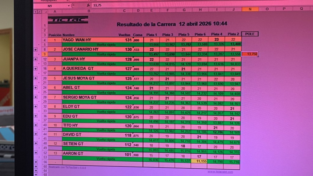 En lo que respecta a la carrera, divertidísima, variada, intensa en pista, duelos muy bonitos, como siempre con maquinaria variada; esta carrera en cuestión marcaría un antes y un después en este 2026, gracias a un mano a mano que tardaremos mucho tiempo en olvidar los que pudimos presenciarlo, entre los dos primeros clasificados, Yago Mateos y José Hernández «Canario». Espectacular. Marcaje mútuo a un ritmo elevadísimo, sin cometer errores, y una diferencia marginal, ínfima, proporcionó la victoria a Yago. A continuación comparto algún metraje, y tras el mismo, comparto la «crónica galáctica» del propio Yago. Disfruten.